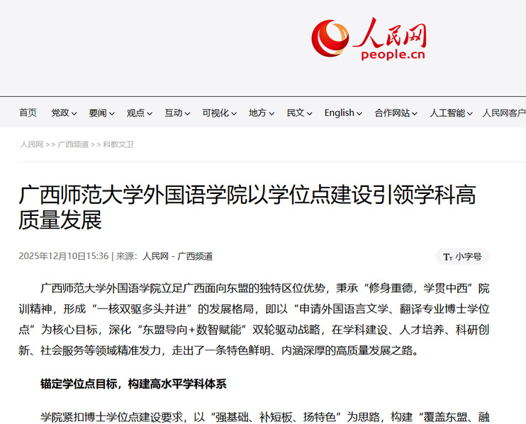 【人民网】关注报道我校外国语学院以“东盟导向+数智赋能”引领学科高质量发展