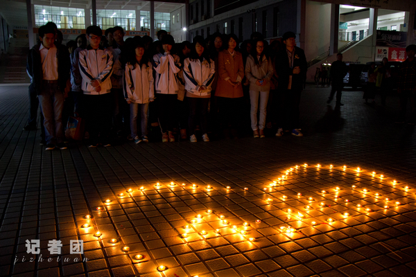 “默哀,为生命,为珍惜。愿逝者安息,生者坚强。”19:30分,漓院管理系学生会的例会上,全体干部起立为四川雅安的遇难同胞默哀一分钟。21点,漓院学子自发手捧烛光来到食堂广场,将手中烛光围成“心形”“420”字样,一起为雅安地震中死难者默哀,为雅安地震灾区同胞祈福。