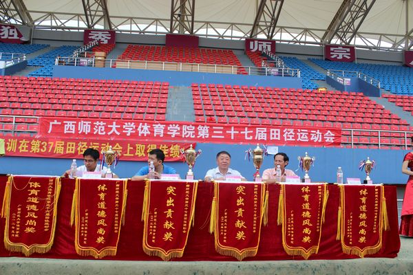 6月7日下午,体育学院在雁山校区田径场举行了第37届田径运动会闭幕式。体育学院的负责人参加了闭幕式。