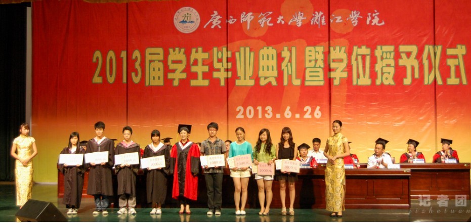 伤感,离别总是难免。正如学院负责人给2013届毕业生致辞中讲到的,今天,当你们走出校园时,你们就将承载着母校更多的期待和牵挂,你们在漓院度过最宝贵的青春年华,“向学、向善、自律、自强”的校训精神早已沉淀在你们的精神气质中,成为你们生命的一部分。四年来,你们是母校发展历程的见证者,也是母校建设发展的参与者。在你们的参与下,母校的办学规模不断扩大,教学水平和人才培养质量不断提升,顺利获得了独立授予学士学位权,获得了标准化学生宿舍,标准化学生食堂,安全文明校园,卫生优秀学校等荣誉称号,你们与母校朝夕相伴,共同成长,也为母校的发展做出了积极的贡献。他代表母校赠言,希望毕业生们“追求远大理想,坚定崇高信念;矢志艰苦奋斗,勇于创新创造;增强道德修养,锤炼高尚品格。”