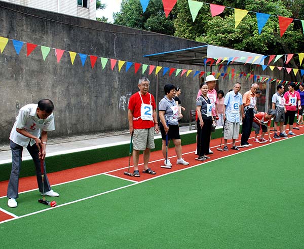 启动仪式结束后,我校离退休老同志6支门球队伍分别进行了友谊赛。