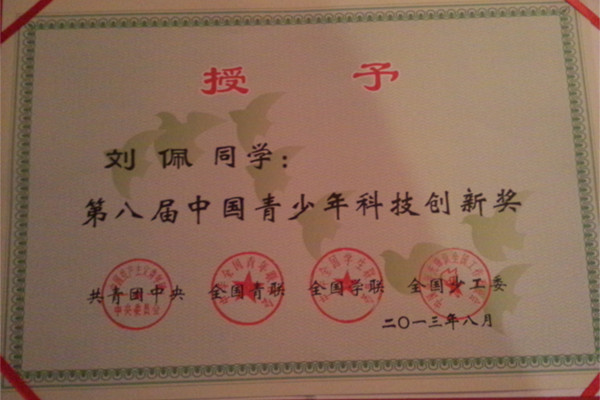 近日,由共青团中央、全国青联、全国学联等联合举办的第八届中国青少年科技创新奖颁奖大会在北京举行,国家副主席李源潮,国务院副总理刘延东及邓小平的亲属邓楠、邓蓉等出席大会并为获奖青少年颁奖。我校刘佩与刘仁路两名学子,凭他们在科技学术创新方面的优异表现脱颖而出,荣获第八届中国青少年科技创新奖。本次全国共有100名青少年荣获该项殊荣获得此奖,其中有31名本科生和35名研究生。刘佩与刘仁路是广西3名获奖者中唯一一名研究生生与唯一的一名本科生,另一名获奖学生为南宁市一中学生。