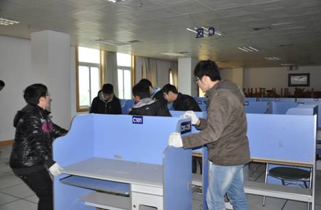 2月21日—3月3日,电子工程学院志愿者们在图书管理员的指导下,对图书馆的书架、桌椅以及电子图书室进行了整理。面对杂乱无章的书架桌椅,志愿者们表现出高涨的热情与充沛的活力,抬书架、搬桌椅,每个人都积极行动起来。“只要一想到我现在像雷锋一样,全心全意为即将来到图书馆的同学们营造整洁的学习环境贡献了力量,我就充满了干劲!”已经是第三次参与该活动的志愿者李同学说道。
