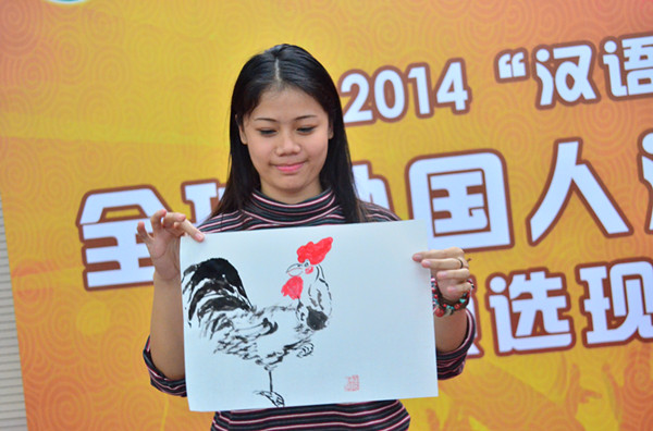 可爱的黎玉蓉来自越南。她一人分饰两角,将选手与评委之间的对话活灵活现地表现出来,她标准的汉语发音让在场人都赞叹“简直就是中国人”。她说:“希望学好汉语,以后回国能教更多的孩子学习中文。”