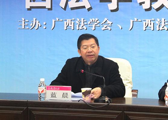 蓝晨主任在致辞中,对广西法学界和法学教育界对科学研究和人才培养工作所付出的努力和成果充分的肯定,对广西师范大学法学教育和学科发展表示了高度赞赏,希望本次研讨会在探讨法律人才培养理念、方法和模式等方面所取得更大的成果。