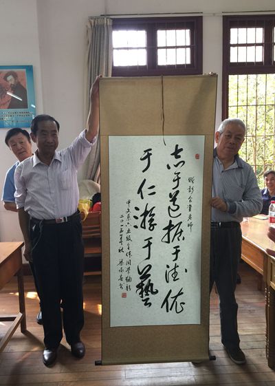 会上,65级的校友还向学校赠送了“书能医俗、德可树人”的书法作品,祝愿学校今后的办学发展蒸蒸日上,在教书育人、立德树人方面更有作为。同时,校友们还给与会的每位任课老师赠送了书法作品,祝愿老师们身体健康,阖家幸福。