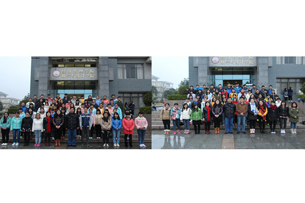虽然阴雨绵绵,但同学们高涨的情绪丝毫不减。2015级新生齐聚学院门前,以班级为单位,分别与学院领导、辅导员、班助合影留念。镜头中,映出了同学们一张张自信而青春的面庞。留影结束后,同学们纷纷用朴实而暖心的话语,感谢学院领导、辅导员、班助们一路来的陪伴、关心与帮助。