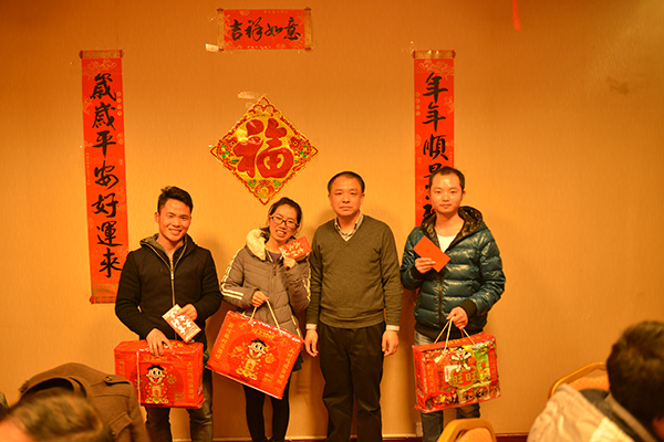 团年宴上,校党委副书记赵铁代表学校向留校过年的本科生和研究生们致以诚挚的新年祝福,祝愿大家在新的一年里,学习进步、学业有成、猴年大吉、梦想成真。他说,春节是中国人最重要的传统节日,在校与老师、同学共度新春佳节意义非凡,希望全体留校学生度过一个安全、美好、有意义、欢乐、祥和的春节,在这里找到家的感觉。随后,赵铁副书记依次向每桌同学举杯贺岁,详细询问他们的学习和生活情况,并为留校学生发放了学校精心准备的礼包和红包。赵铁副书记还同时嘱咐同学们通过电话、短信等形式向家人拜年,不忘家庭和社会对自己的养育之恩。同学们也纷纷把对新年的祝福送给学校领导和老师,“团年饭”上洋溢着欢乐祥和的气氛。