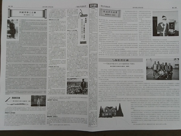 日前,为树立榜样力量,凝心聚力,在广大青年学子中传播正能量,学院记者团《嘤鸣》编辑部在院学工办、分团委的指导下,策划、组稿、出版了《嘤鸣》报纪念版,设立学生干部台历专栏,突出学生干部在学院各项工作中发挥的先锋模范作用,从教师的视角展现学生干部的风采及在学生群体中特有的魅力。学院党委相关负责人及每位辅导员用心写下身边学生干部(团队)平凡却又不平淡的默默无闻的小故事。老师们或回忆过往点滴,或抒写心中真情,文字或动容温情,或激昂慷慨,字字句句不仅是记录着学生干部(团队)的事迹,更是流露出师生之间那一份令人感动的深深情谊。