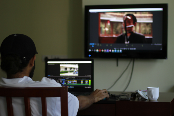 日前,9位外国青年在指导老师的指导和志愿者的协助下,正在育才校区大本营有条不紊地进行后期的剪辑工作。他们将各自完成一部反映当代广西民族风采,传统与现代、古朴与时尚交相辉映的约10分钟的微电影,于4月22日晚7点在雁山校区音乐学院三楼演艺厅进行展映与传播,向观众传播独具特色的八桂壮乡风情。