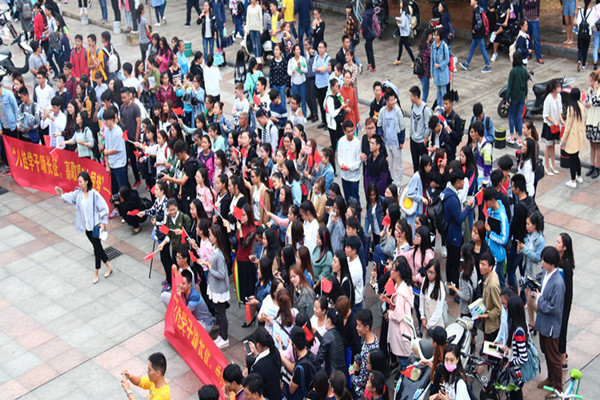 10月19日,由广西师范大学党委宣传部主办、音乐学院孟卓老师课题团队《唱响中国梦—爱国主义歌曲践行普及实践课程》承办的“八桂学子颂长征,高歌唱响中国梦”――纪念长征胜利80周年校园快闪活动取得圆满成功。此次红歌校园快闪活动受到我校学生群体的广泛关注并获得强烈反响。“颂长征”红歌快闪活动通过传唱经典红歌作品的方式,引导我校学生回顾红军长征的光辉历史,学习红军长征精神,激发培养我校学生爱国、爱党、爱校的优良品质。