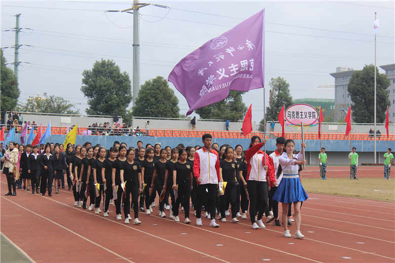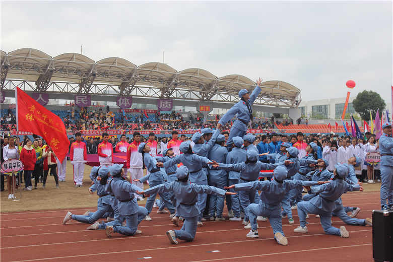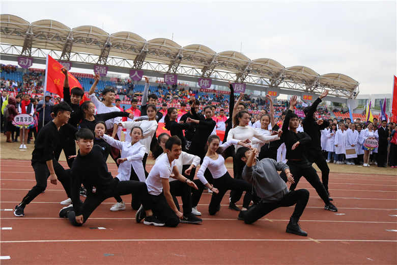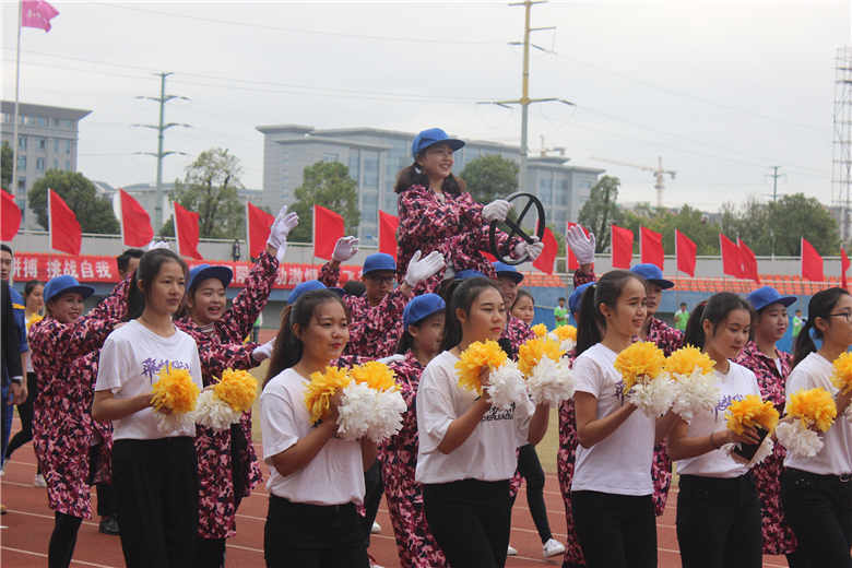 伴随着激昂的《运动员进行曲》,各单位代表队入场,他们踏着整齐的步伐,高喊着洪亮的口号,走过主席台接受检阅。各方块队的表演精彩纷呈,独具匠心,为现场观众奉上了一场视觉盛宴。体育学院方块队高喊着“更高、更快、更强”的口号,将中国武术的元素融进了街舞表演中,带来了别开生面的演出;文学院/新闻与传播学院用“文院TV”的形式,展现了时代变迁的岁月沉淀;职业技术师范学院方块队成员身着各行业的代表性服装,给现场观众展现了专业风采;“革命精神永不忘”,历史文化与旅游学院的方块队成员身着红军战士的服装带来的表演,让现场观众仿佛回到长征的岁月,感受历史的魅力。