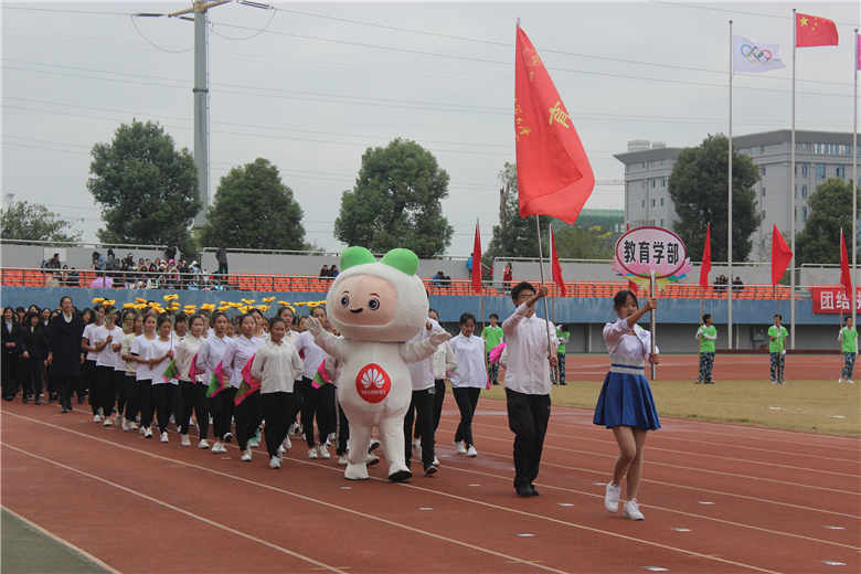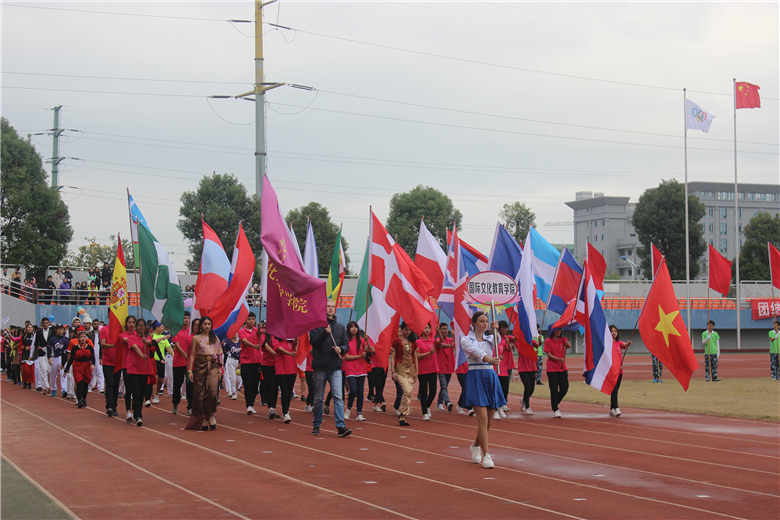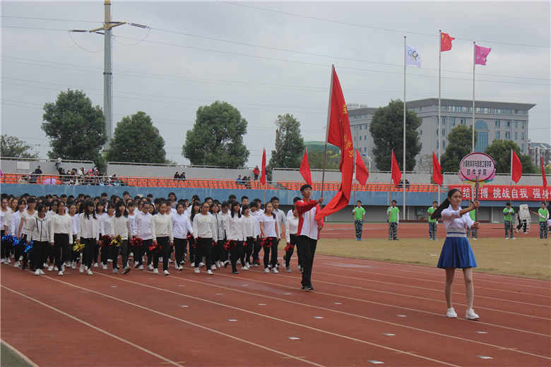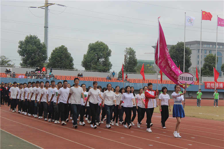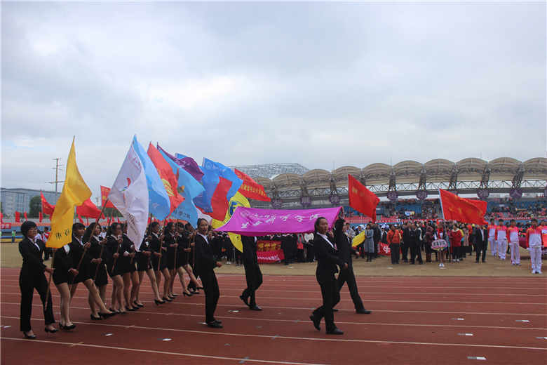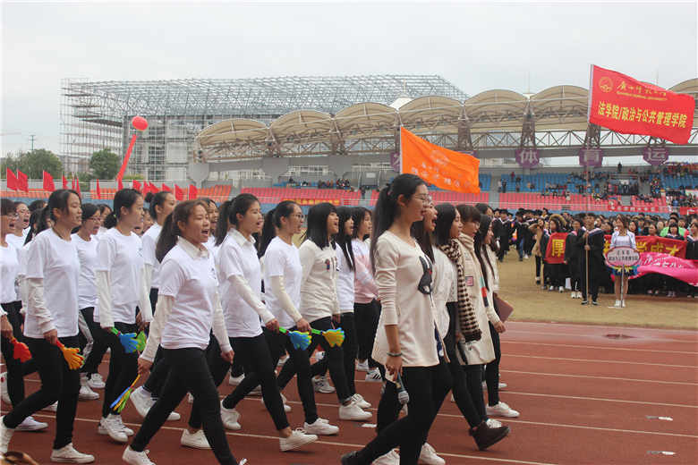 校长梁宏致辞。梁宏校长表示,我校一直注重学生德、智、体的全面发展,希望全体运动员发扬“更快、更高、更强”的奥林匹克精神,敢于拼搏,奋勇争先,赛出成绩,赛出友谊,进一步推动我校体育事业蓬勃发展,进一步鼓舞全校师生员工的士气,以饱满的精神状态,迎接即将到来的教育部本科教学审核评估工作。并汇报了我校在2016年取得的佳绩:在2016年世界大学生啦啦操锦标赛中,我校获得双人街舞世界冠军;石千惠、余宗财两位老师参加美国啦啦操锦标赛,获得双人街舞世界第五名,这是我国教师第一次入选国家队参赛;在2016年全国大学生武术锦标赛中,我校获得太极拳项目第一名1个、第二名4个,第三名3个;在第九届中国大学生舞龙舞狮锦标赛中,我校获得南狮自选套路第二名,南狮传统项目第二名;在2016年广西壮族自治区第十一届学生运动会中,我校共参加8个项目的比赛,获得团体总分(988分)第一名,比第二名(497分)多出491分,其中有16个项目比赛成绩破赛会记录,获得冠军共36个。