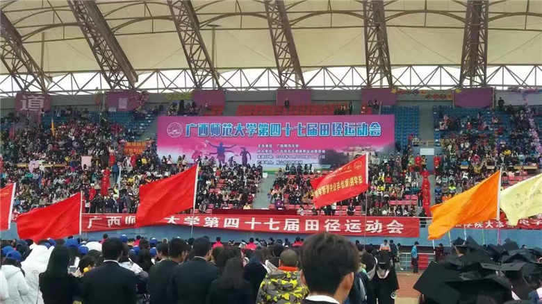 运动员代表,裁判员代表在主席台上庄严宣誓,随后,王枬书记郑重宣布:“广西师范大学第四十七届田径运动会开幕!”