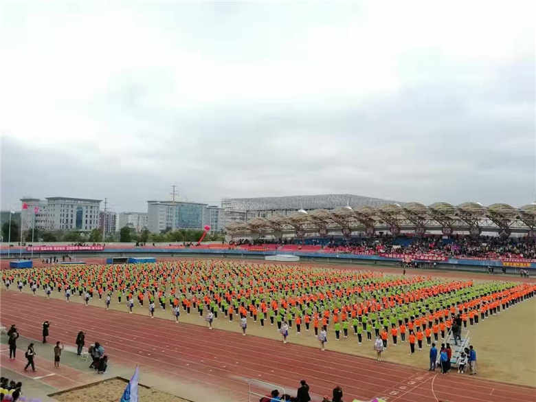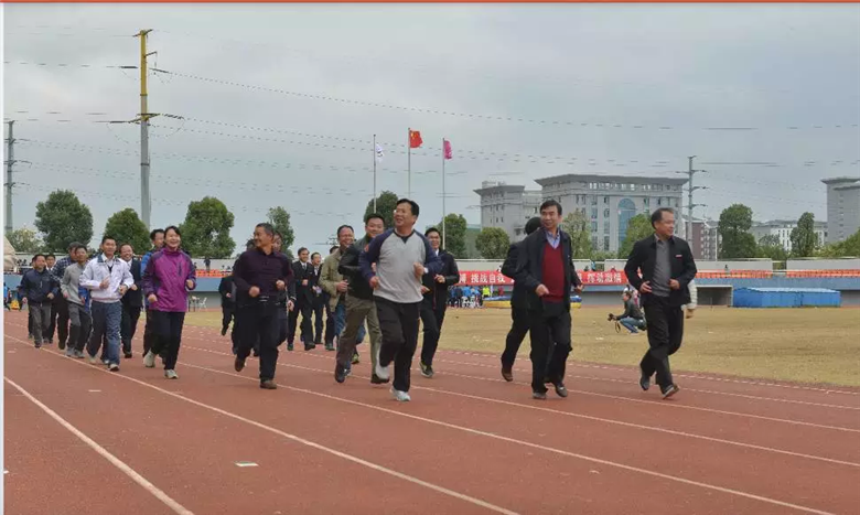 开幕式后,马龙啦啦操队的啦啦操表演将全场气氛推向最高潮,高空翻跳、利落的舞姿获得全场观众热烈的掌声和喝彩声。广播体操比赛中,身着绿色和橙色上衣的各学院学生动作整齐划一,充满活力,全场又是一阵掌声。最后,我校副处级领导干部及教师代表参加400米健身跑活动。