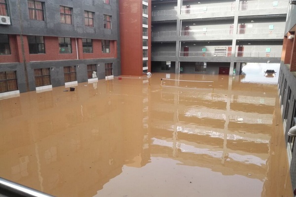7月2日,受多日强降雨和上游泄洪的影响,我校雁山校区相思江水位持续上涨,下午一点左右河水开始倒灌,学校部分路段及区域受到水淹,受灾面积不断扩大。很快洪水漫入存放化学药品和重要仪器的伯康楼和实验教学中心楼。为防止化学药品泄露造成巨大污染及仪器损坏,环境与资源学院党委经紧急商议,迅速组建党员抢险救援小组,展开了一系列应急抢险工作。