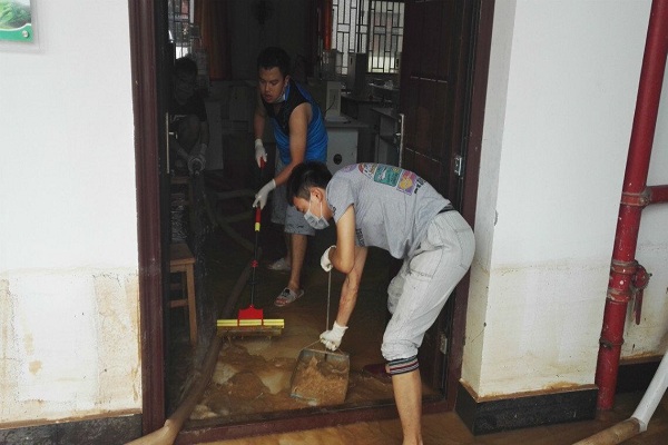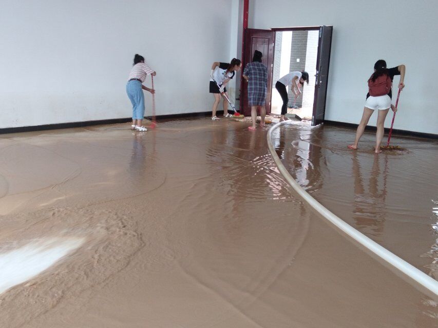 洪水退却,校园一片狼藉,学院实验教学中心和伯康楼内沉积了大量淤泥和垃圾,浸泡过的实验仪器也急需清理以防造成更大损坏。7月4日8:30至18:30,学院组织全体学生党员对实验教学中心和伯康楼进行了集中清扫。灾后的一楼,堆积了多层泥垢,几乎无处落脚。大家先用用垃圾铲重点铲除淤泥,再用水管进行全方位冲洗。经过党员同志们数十小时的通力合作,顺利完成了两栋楼的灾后清理工作。7月6日又组织一批同志对进行了全面的消毒。