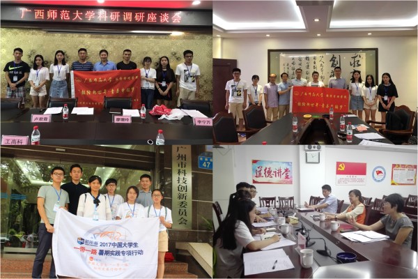 由共青团中央学校部、中国大学生“一带一路”协同发展行动中心联合主办的2017年“丝路新世界•青春中国梦”全国大学生暑期社会实践专项行动于2017年6月正式启动。经济管理学院和珠江-西江经济带发展研究院联合成立的“珠江-西江经济带创新驱动产业转型升级现状调查”实践团和“‘一带一路’背景下珠江-西江经济带小微企业融资现状调查”实践团,分别获批成为该专项行动招募团队。这2支实践团队的首席专家为经济管理学院蒋团标教授,指导老师分别是经济管理学院梁爱云教授、钟学思副教授、张海丰博士以及珠江-西江经济带发展研究院廉超老师、裴金平老师。实践团队成员由我校经济管理学院、法学院/政治与公共管理学院等院系的60余名硕士研究生和本科生组成。实践团队共设11个调研小组分赴广西柳州市、来宾市、梧州市、贵港市、南宁市、百色市、崇左市7市,以及广东广州市、佛山市、肇庆市、云浮市4市,深入城市、乡村和企业进行为期30余天的调研活动。