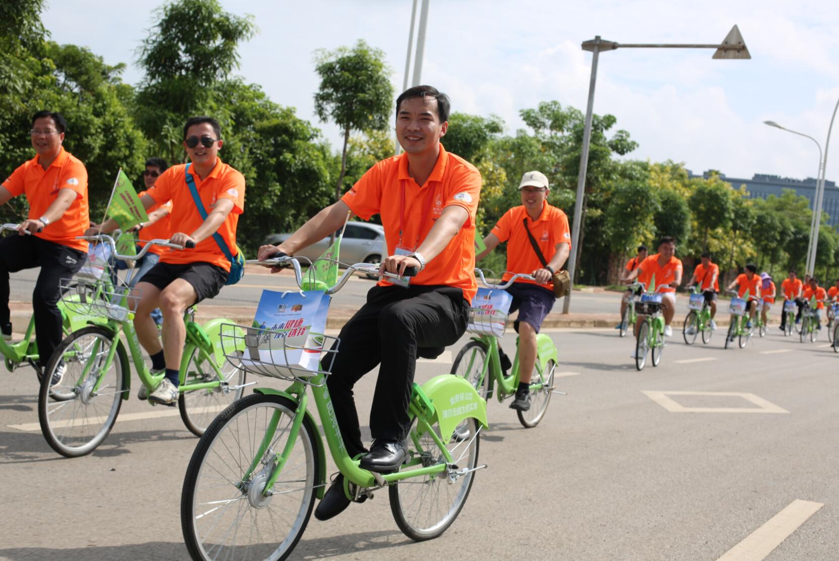 此次绿色骑行从南宁市青少年活动中心(五象宫)出发,途经五象湖公园、玉洞大道、那黄大道、总部基地等到广西体育中心的五象新区建设规划展示厅结束。在骑行启动仪式上,我校副校长覃卫国、南宁校友会常务副会长韦经航、南宁青年分会会长贵尚明分别做了致辞和讲话。广西期刊传媒集团和广大校友为南宁市良庆区那陈中学、南晓雅王小学捐赠12000元图书,用实际行动来践行师大的“尊师重道,敬业乐群”的校训精神。到达终点后,在南宁市委常委、市委秘书长黄宁的带领下,参观了五象规划展厅。大家认真地听取了五象新区的发展历史和所取得的成就,对新南宁的发展有了更深的认识和了解。