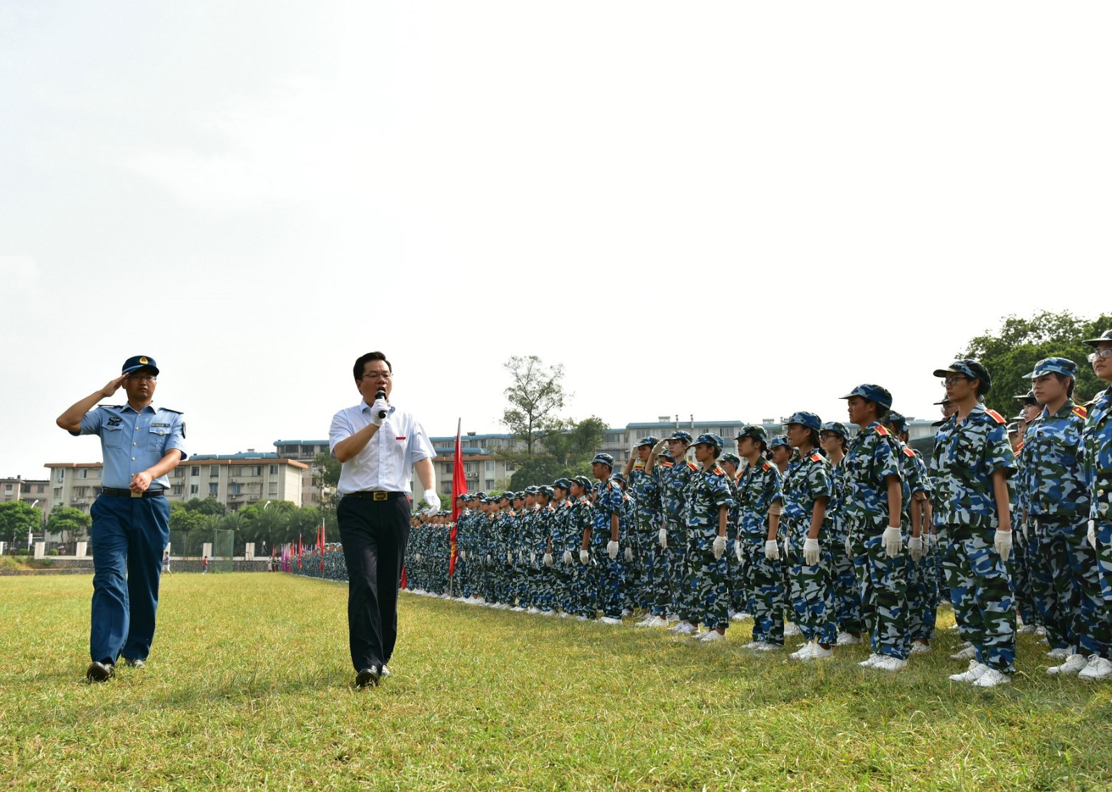 贺祖斌寄语参训新生,希望他们在今后四年的学习生活中坚持军训中养成的品德,将爱国之情,报国之志,融入学习生活中。不畏艰难险阻,做一个精益品质的人;不畏青春时光,做一个丰富学识的人;不辱时代使命,做一个有家国情怀的人。