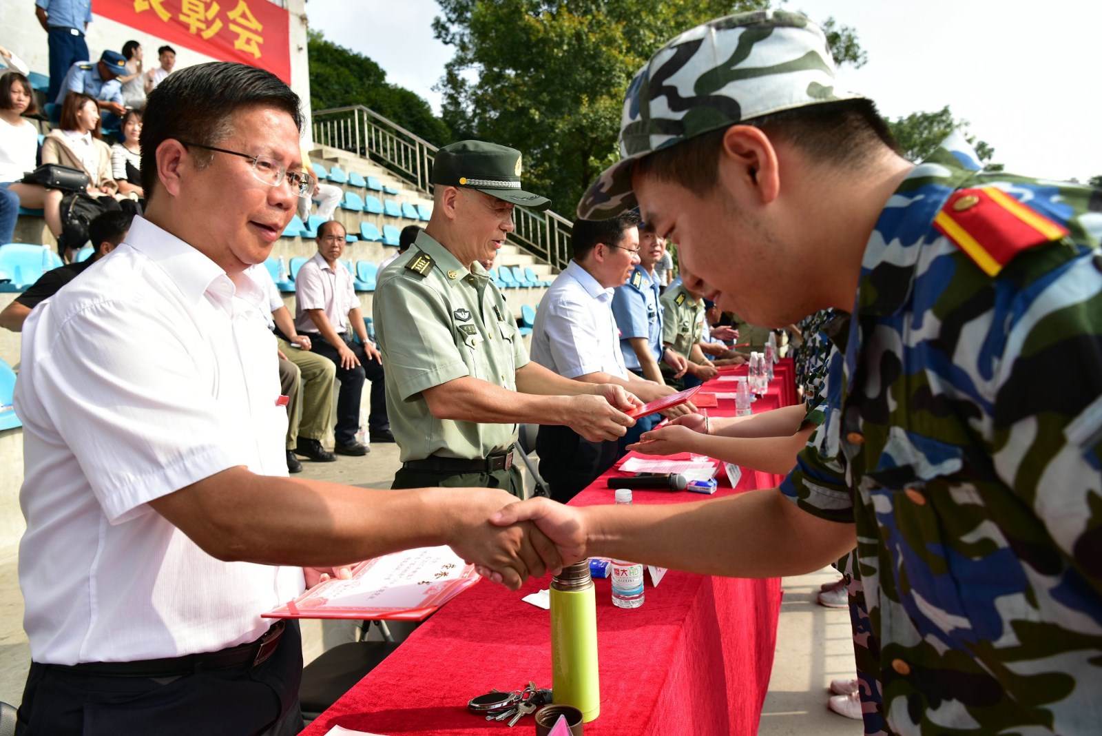 贺祖斌校长为军训工作先进单位和先进个人颁奖