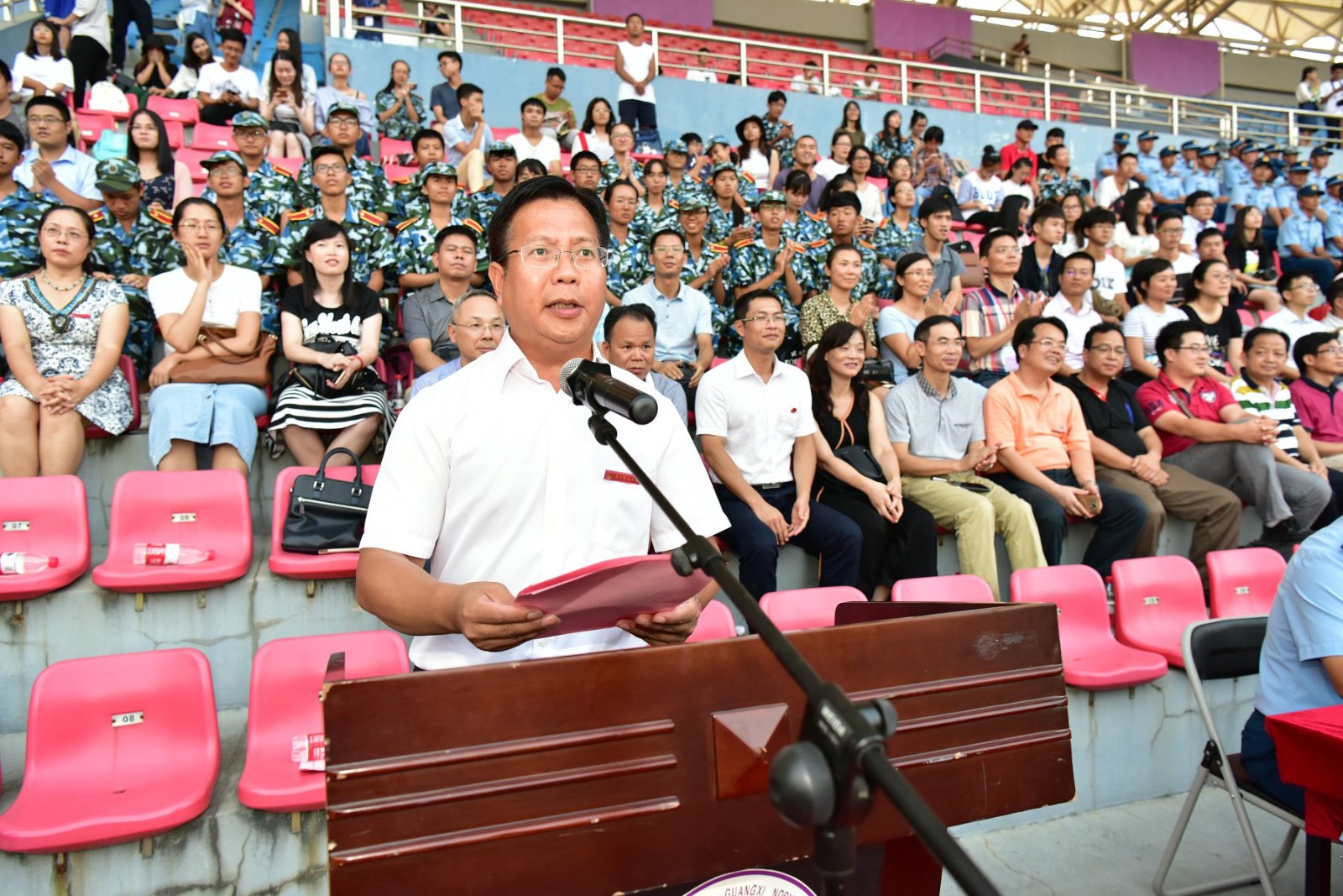 贺祖斌校长在总结表彰会上致辞。他高度评价了承训官兵、参训学生、带队老师在军训中展现出的责任感和使命感;对参训新生通过军训,提高体能体魄、队列动作、军事技能,培养独立自主、不惧挑战、团结合作精彩给予了赞扬。