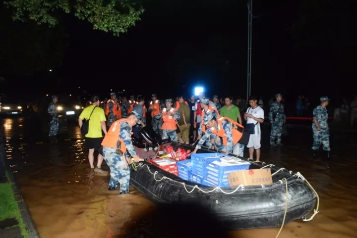 2017年7月2日中午,我校雁山校区相思江水位突然上涨,雁山校区部分路段及区域因河水倒灌,校内部分区域及路段受到水淹,汛情紧急,我校求助95795部队。接到求助电话后,当时正在执行任务的官兵们为了争取到更多的时间,没有来得及准备备用衣物便直接出发,教练营66名官兵,出动12台运输车辆,携带8艘救援艇及设备物资赶赴雁山校区。经过近6个小时的连续奋战,组织营救转移被困人员400余人,将应急药品等救灾物资安全送至学生手中。在全体官兵和我校师生的共同努力下,取得了抗洪抢险的胜利。这充分体现了我们的军队是人民的军队,关键时刻,他们是人民群众最可靠的强大力量,军民鱼水情深,人民军队为人民。