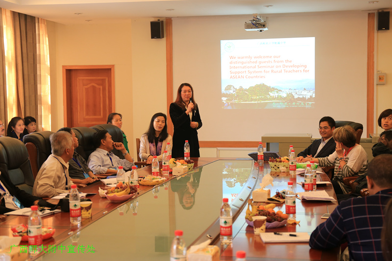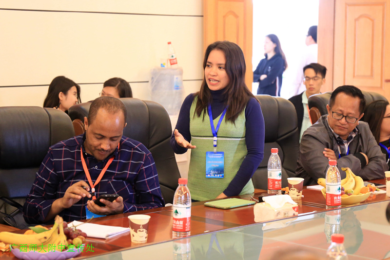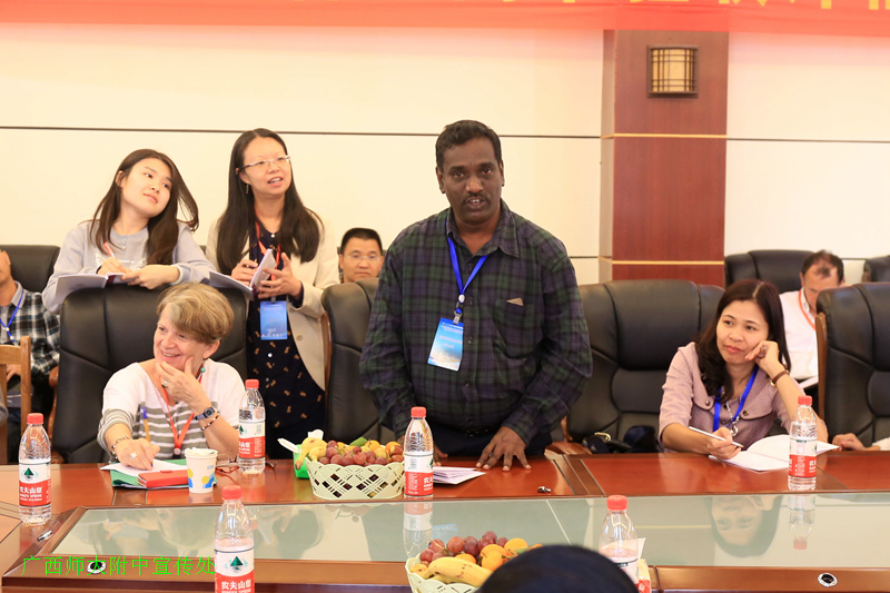 参观过后,附中校长向考察团介绍了附中乡村教师的支持计划和做法,附中教师代表贝桂鸾、范江洪、李文芬也介绍了各自支教的经验。之后东盟10国的教育考察团官员进行了提问。