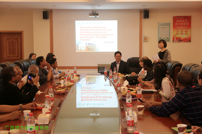 11月13日,东盟10国的教育考察团的全体官员来到我校考察,了解我校附属中学在实施乡村教师支持计划方面的具体做法,附中领导接待和介绍了相关情况。