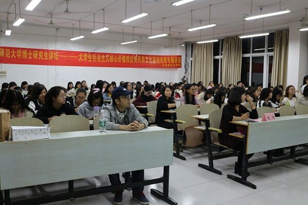 为深入贯彻学习党的十九大精神,弘扬社会主义核心价值观,培育优秀民族文化基因,感受中华文化魅力,根据学校《大学生核心价值观优秀民族文化基因培育》工作的整体部署,近日,马克思主义学院邀请文学院古代文学博士研究生陈力士为2017级思想政治教育专业本科生开展了“谈苏轼词的诗化现象”专题讲座。讲座由学院分团委负责人主持,2017级全体新生和助班共同参加。