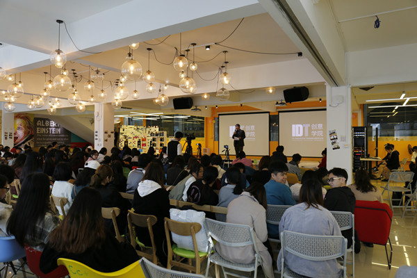 而设计学院负责人在主题为“如何担当:做好社会服务发展”的演讲中,向同学阐述了设计的最终是价值取向,有思想的设计才能得到延伸。他还举例了湖南大学、香港理工大学等高校开设创业课程的例子,更进一步说明,设计应该服务于社会。