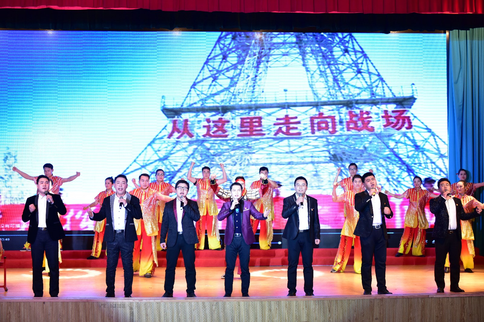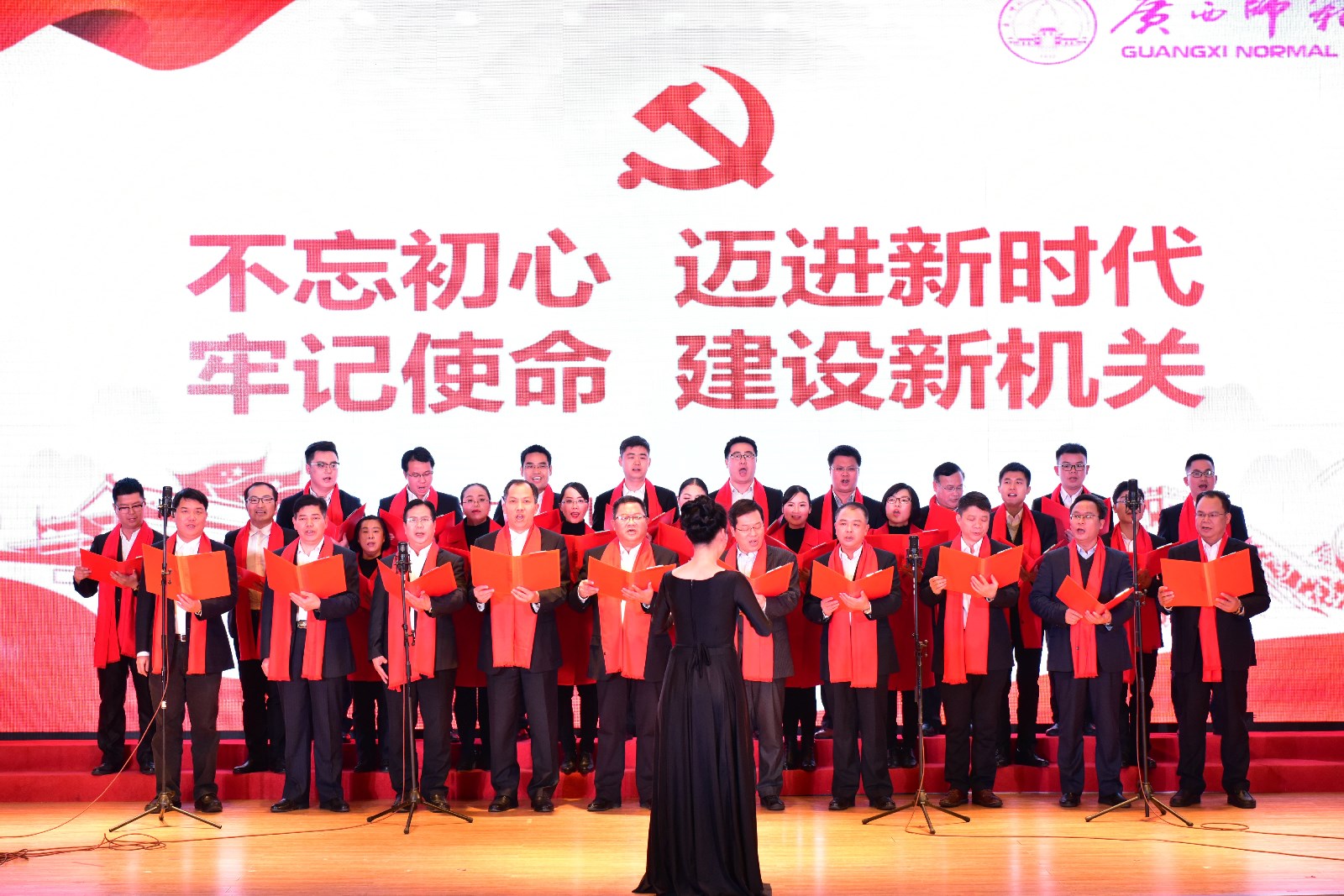 全体校领导及党办/统战部/督查办党支部、校办/发规办党支部合唱《我们走在大路上》