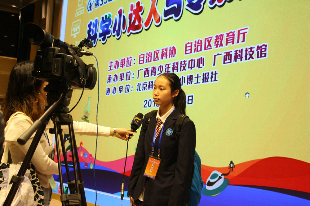 学生在接受广西电视台采访