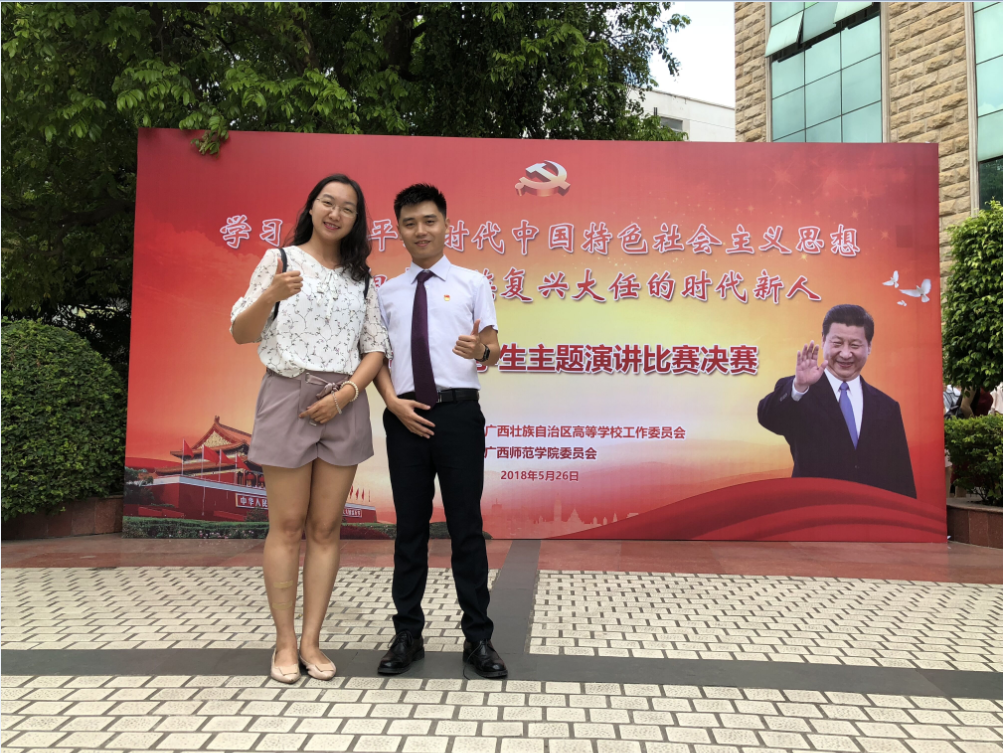 5月26日上午,由中共广西壮族自治区高校工作委员会主办,中共广西师范学院委员会承办的全区高校大学生“学习习近平新时代中国特色社会主义思想,争做担当民族复兴大任的时代新人”主题演讲比赛决赛在广西师范学院明秀校区圆满落幕。我校生命科学学院2017级研究生赵剑光演讲的《新时代,“志”最青春》荣获本次比赛二等奖。