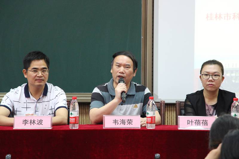 首先,桂林市教科所韦海荣副所长致开幕辞,对科研主任如期来到广西师大附中参加活动表示欢迎,同时希望桂林市各类不同学校能够积极承办桂林市科研示范校开放日活动,以展示不同学校的科研特色和风采;接着广西师大附中科研主任张小雄老师做了《做有质量的科研,做有实效的科研,做有特色的的科研》专题汇报,张小雄主任从科研管理、教师专业化成长、学校科研特色三个方面系统的介绍了广西师大附中2013年至2018年的科研工作情况和取得的科研成果;最后广西师大附中校长李林波做专题报告----《普通高中创新实施科技课程的实践与经验》,李林波校长从时代背景、课程实践、经验与特色三个方面将广西师大附中获得“广西基础教育教学成果奖一等奖”的课程成果向所有科研主任做了详细的介绍,并系统的阐述了师大附中从2011年至2018年开展的“科技创人才培养”工作的探索、实践和取得成果情况。