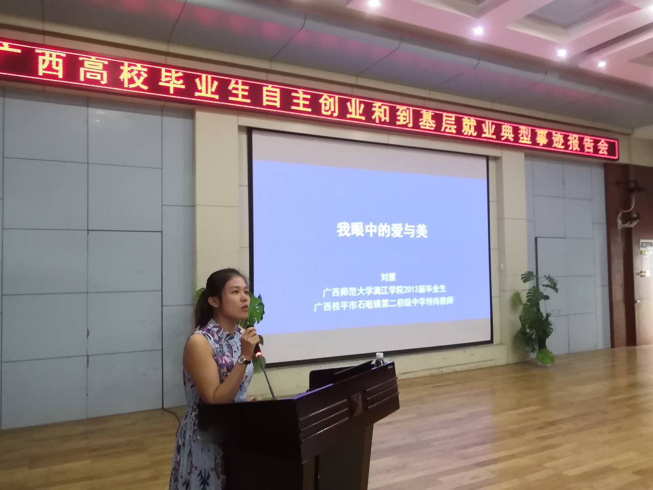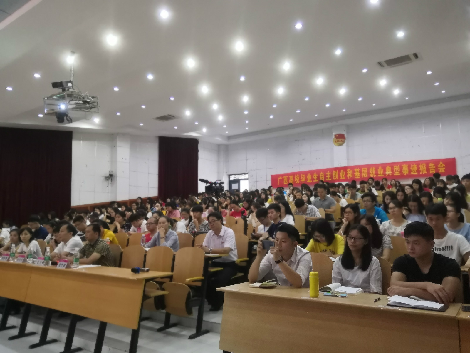 近日,由自治区教育厅、自治区人社厅主办的广西高校毕业生自主创业和到基层就业典型事迹报告会在雁山校区学术报告厅隆重举行。各学院2018和2019届毕业班辅导员、2018和2019届毕业生代表近300人参加了此次报告会。报告会由校党委副书记旷永青主持。