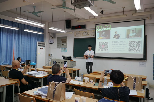 “趣弹音乐——轻乐器在线教育服务平台”项目负责人帅圳兴在广西赛区决赛路演现场