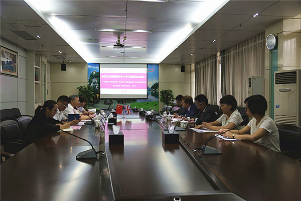 苏桂发首先对代表团的来访表示热烈欢迎,并对我校的现状和发展情况作了简要介绍,特别是与英国的国际交流与合作的情况。他充分肯定了我校与格林多大学的交流与合作,格林多大学一直是我校最亲密的伙伴之一,我校高度重视两校传统友谊,希望两校在未来相互借鉴经验,进一步拓展其它领域的合作,讨论在教学、科研人员和行政人员的交流互访、联合发表学术成果、联合培养高级人才等领域开展合作的可能性。