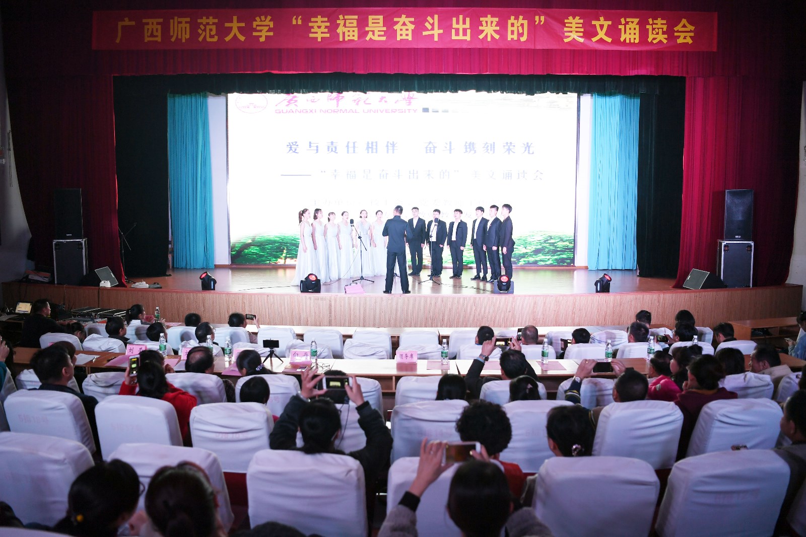 11月30日晚,由校工会与党委教师工作部、党委宣传部、教师教育发展中心等部门联合举办 “幸福是奋斗出来的” 美文诵读会在育才校区田家炳教育书院报告厅举行。