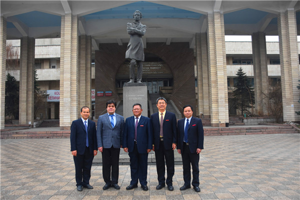 为更好地服务国家“一带一路”发展战略,开拓我校在吉尔吉斯斯坦和哈萨克斯坦的留学生生源,2018年12月9日至16日,以校党委书记邓军为团长的我校代表团一行4人应邀访问了吉尔吉斯斯坦和哈萨克斯坦8所高校、机构,并与吉尔吉斯斯坦阿拉巴耶夫国立大学和哈萨克斯坦KIMEP大学签署了合作协议。