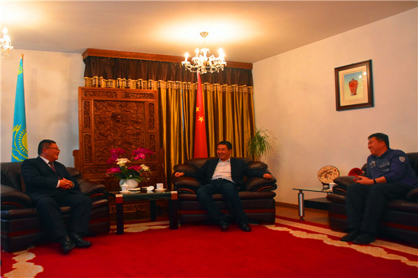 拜会中国驻阿拉木图总领事馆时,邓军书记就中哈两国教育人文交流、广西师范大学与哈萨克斯坦高校的合作情况作了充分的沟通,得到了领事馆的肯定和支持。