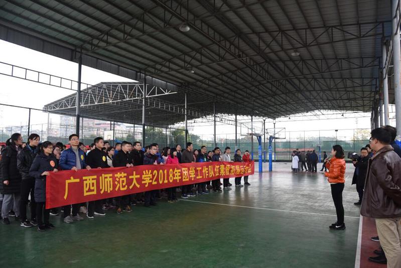 12月25日上午,我校在雁山校区顺利举行2018年“团学队伍心向党,努力拼搏展风采”团学工作队伍素质拓展运动会。校党委副书记旷永青、学工部(处)、校团委全体干部和全校专兼职辅导员共140余人参加了本次活动。活动由学工部(处)相关负责人主持。