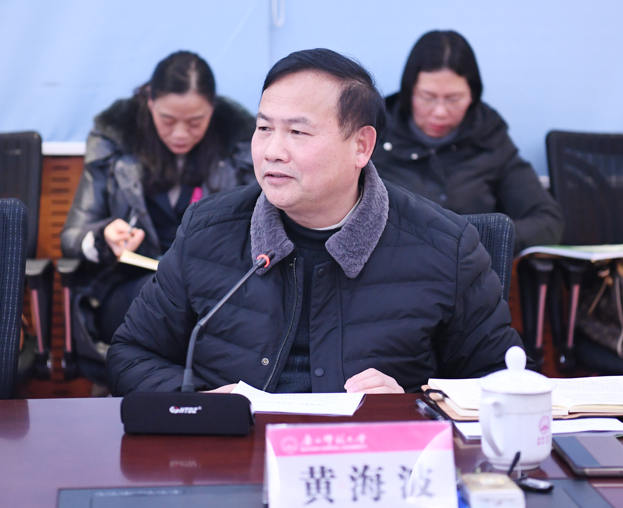 在学习习近平总书记在庆祝改革开放40周年大会上的重要讲话精神、为庆祝广西壮族自治区成立60周年题词精神,全国政协主席汪洋在广西壮族自治区成立60周年庆祝大会上的讲话精神环节,马克思主义学院院长汤志华教授针对学习习近平总书记在庆祝改革开放40周年大会上的重要讲话精神作了专题辅导;副校长苏桂发以改革开放亲历者的身份作学习主题发言,结合自身经历阐述了对习近平总书记在庆祝改革开放40周年大会上总结的“九个必须”的理解和体会;校党委常委黄海波以《从数据感受广西改革开放四十年伟大成就》为题深入阐述了广西壮族自治区成立60周年以来特别是改革开放40年以来的伟大成就。