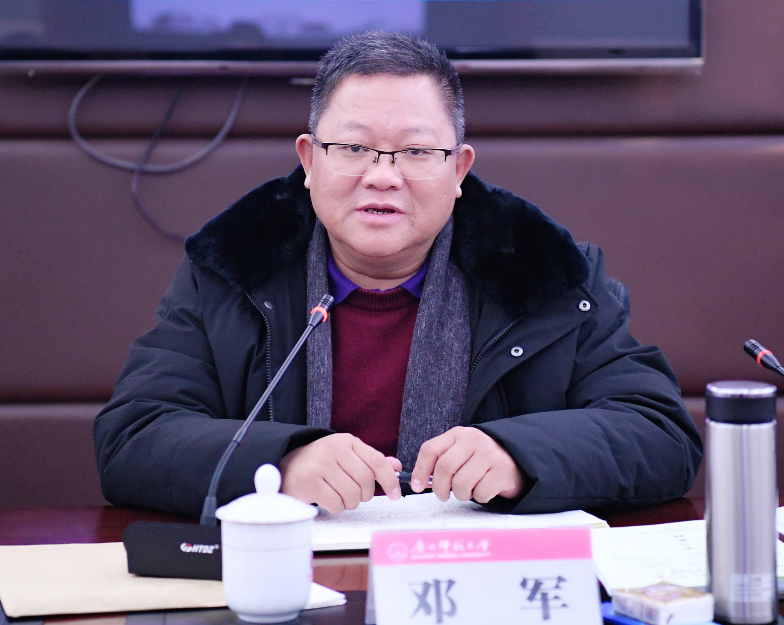 近日,我校召开第十一届党委理论学习中心组(扩大)第五次集中学习会议,会议以“不忘改革开放初心,奋力谱写‘双一流’建设新篇章”为主题,主要内容涵盖深入学习贯彻习近平总书记在庆祝改革开放40周年大会上的重要讲话精神、为庆祝广西壮族自治区成立60周年题词精神,全国政协主席汪洋在广西壮族自治区成立60周年庆祝大会上的讲话精神;学习贯彻《中国共产党纪律处分条例》《中国共产党支部工作条例(试行)》《新时代高校教师职业行为十项准则》《教育部关于高校教师师德失范行为处理的指导意见》等重要文件精神。会议由校党委书记邓军主持并作总结发言。
