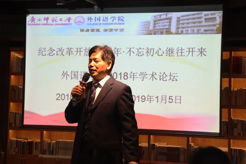 外国语学院举办以“不忘初心 继往开来”为主题的外语学术论坛,是一次以实际行动传承和发扬外院优良学术传统的意义重大的活动。改革开放40周年,也是外院招收硕士研究生40周年。老一辈外院人为学院打下了坚实基础。新时代的外院人不忘初心,奋发图强,近年来在外语教育、学术研究、学科建设等方面都取得了令人鼓舞的成绩。但这些成绩与即定的目标还有较大差距,需要学院每一位老师都行动起来,加强读书学习,打下扎实学科理论基础,紧跟学术研究前沿,紧盯研究热点,凝练研究特色,不断产出高质量研究成果,以研促教,教研相长,全面振兴本科教育,为实现教育强国的梦想而努力奋斗。