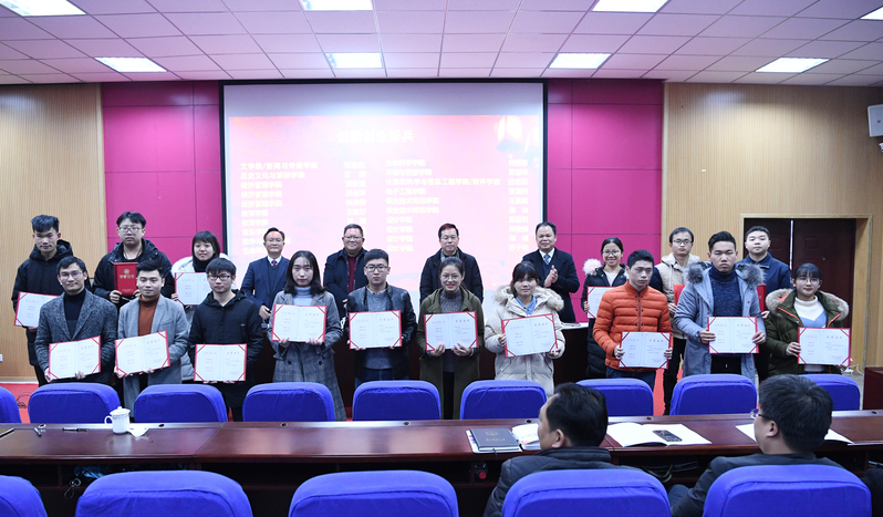 创新凝聚力量,创业放飞梦想。1月9日,我校在育才校区第二理科楼111会议室召开了2018年校创新创业教育工作总结表彰暨2019年“互联网+”大赛校赛启动会。校党委书记邓军,校长贺祖斌,副校长林春逸,校党委常委、校长助理、宣传部部长黄轩庄出席会议,并为2018年创新创业教育工作先进集体、个人以及第四届“互联网+”大赛获奖集体、个人颁奖。黄轩庄宣读2018年创新创业教育工作先进集体、个人以及第四届“互联网+”大赛获奖名单。林春逸主持会议。