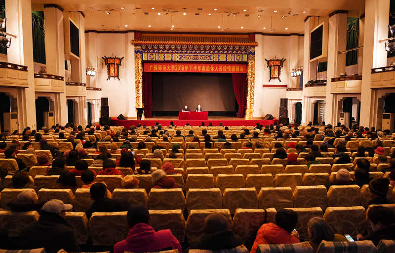 1月11日下午,我校2018年下半年离退休教职工校情通报会在王城校区大礼堂举行。贺祖斌校长出席通报会并作情况通报,旷永青副书记主持校情通报会。党办、校办、校工会、人事处、财务处、保卫处、后勤基建处、校医院等部门相关负责人、离退处全体干部以及650多位离退休教职工参加了此次校情通报会。