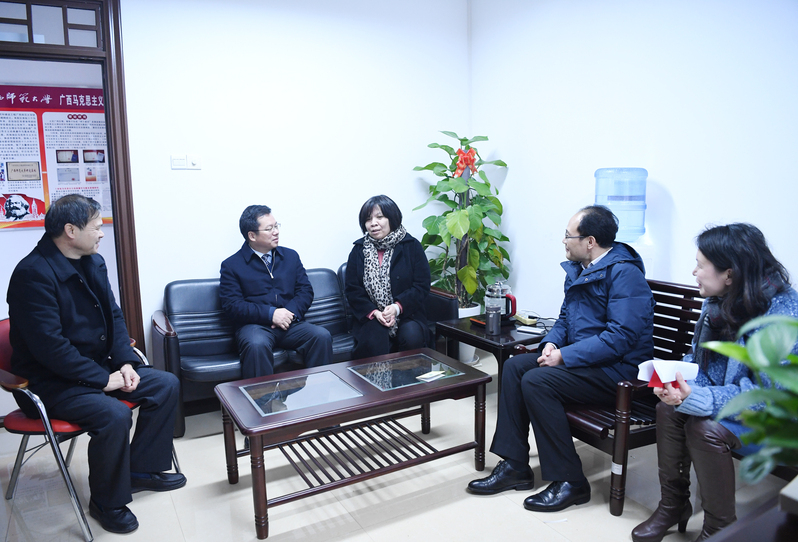 春节将至,我校于1月9日至16日组织开展2019年校领导登门走访慰问活动。校领导邓军、贺祖斌、旷永青、赵铁、黄文韬、苏桂发、孙杰远、莫坷、林春逸、李英利,校党委常委黄轩庄、林国庆、黄海波对退休校领导、离休干部、特困党员、特困教职工、2018年国家教学成果奖获奖教师、2017年自治区级教学成果奖获奖教师、国家社科基金重大招标项目负责人、国家自然科学基金联合基金重点项目获得者、2018年度广西自然科学奖第一完成人、全国高校教师教学竞赛获奖教师代表、青年教师、新进教职工代表和辅导员代表进行了走访慰问,向他们致以新春的问候。