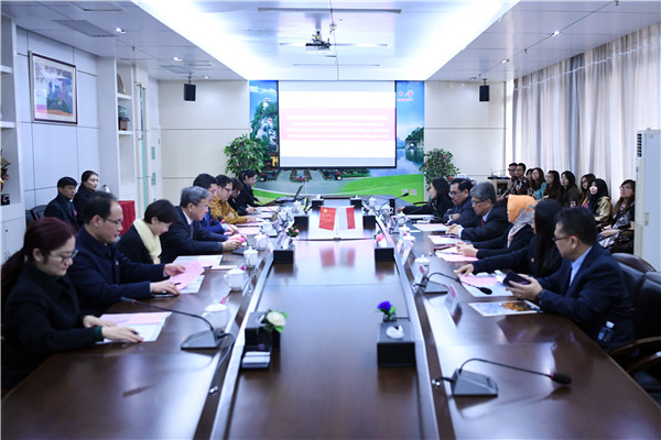 2019年3月6日,印度尼西亚共和国驻华大使Djauhari Oratmangun访问我校,陪同大使来访的人员还有印度尼西亚共和国驻广州总领馆总领事Gustanto、文化领事Siti Hajar Hapsari、副文化领事Raffaelia Sanzio Rodiman。校长贺祖斌、副校长苏桂发、桂林市外事侨务办公室相关负责人出席座谈,校行政、国际合作与交流处主要负责人以及我校印尼留学生代表四十余人参加了会议。座谈会在学校育才校区国际教育交流中心201会议室举行。