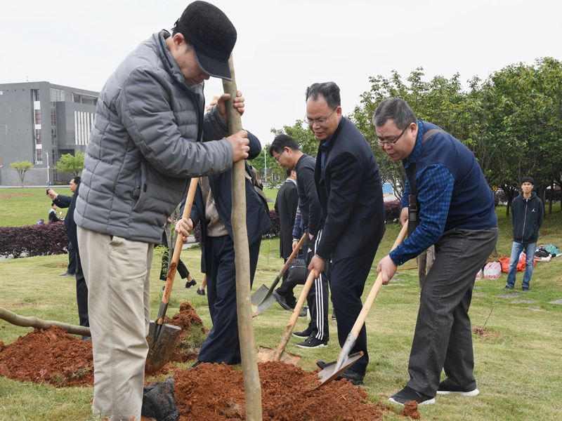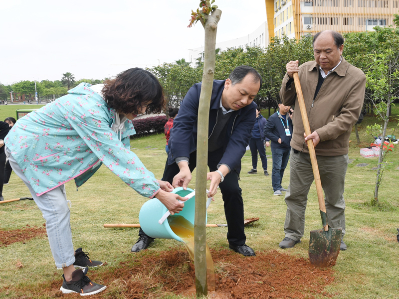 校领导邓军、旷永青、赵铁、莫坷,校党委常委黄轩庄、林国庆、黄海波,与各民主党派主委、统战团体代表在雁山校区桃花樱花林共同种下了40棵紫薇树。